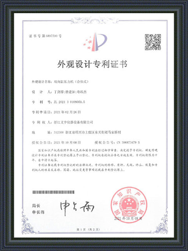 Udseende Design Patentcertifikat